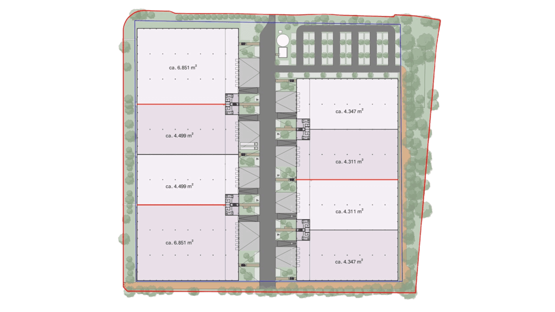 With a total rental area of around 52,500 m², a clear height of 12 meters, and cutting-edge building specifications, the property provides optimal conditions for companies across a wide range of industries. The entire site will be equipped with a sprinkler system built to FM Global standards. Key priorities include the use of renewable energy, CO₂ reduction, and full ESG compliance.